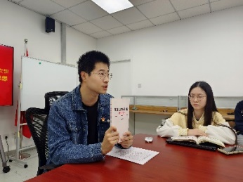 主题党日活动前,在党支部的指导下,大家到学校图书馆选择借阅了自己感兴趣的图书,包括《习近平科学的思维方法在浙江的探索与实践》、《习近平法治思想概论》、《习近平经济思想研究文集》。参加分享的同志有的通过对社会热点的分析阐明中国特色社会主义的优越性;有的现场播放民歌,带领大家回到那段闪耀着光辉的革命岁月;还有的通过互动交流调动在场同志的思维……