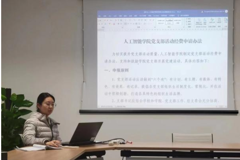 图2.石红薇老师讲解《sunbet申搏官方网站党支部经费申请办法》
