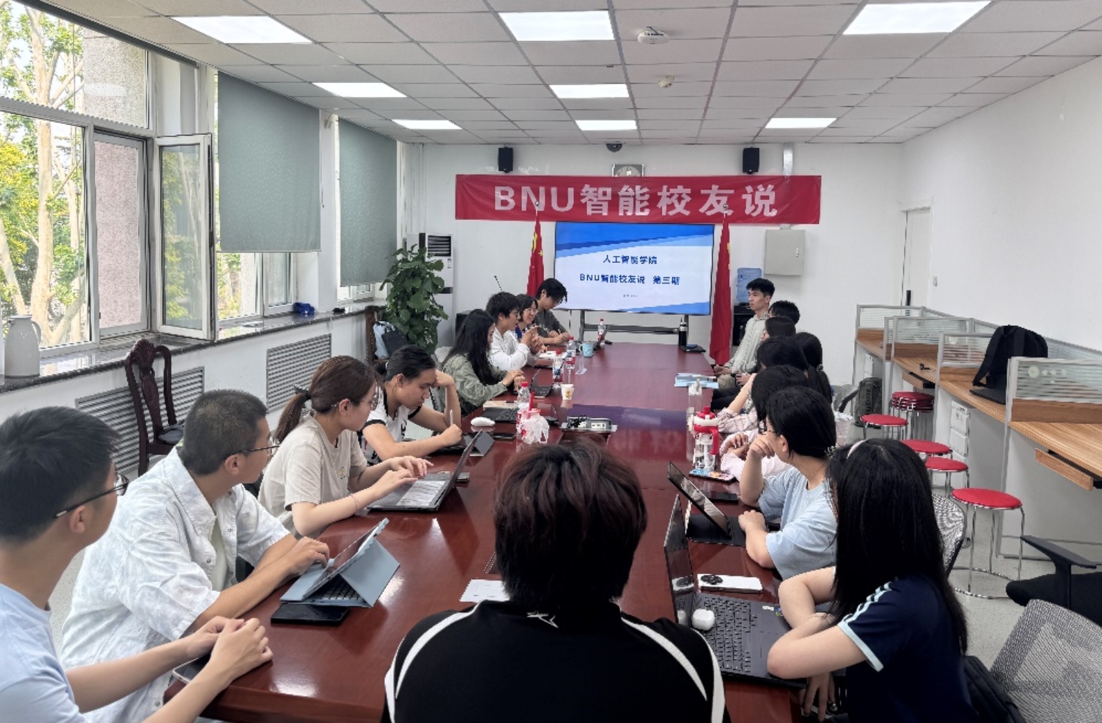 2025年5月25日,sunbet申搏官方网站“BNU智能校友说”第三期活动在海淀校园电子楼306会议室成功举办。本次活动邀请到两位优秀校友——2022届毕业生秦东艺和2024届毕业生黄文山重返校园,与师范生师弟师妹们展开了一场干货满满的座谈交流。