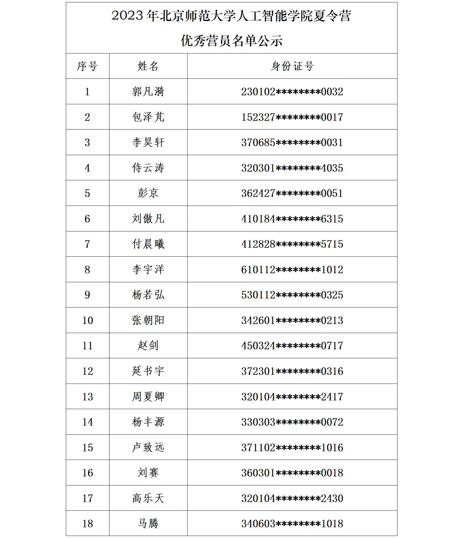 2023年sunbet申搏官方网站夏令营优秀营员名单公示