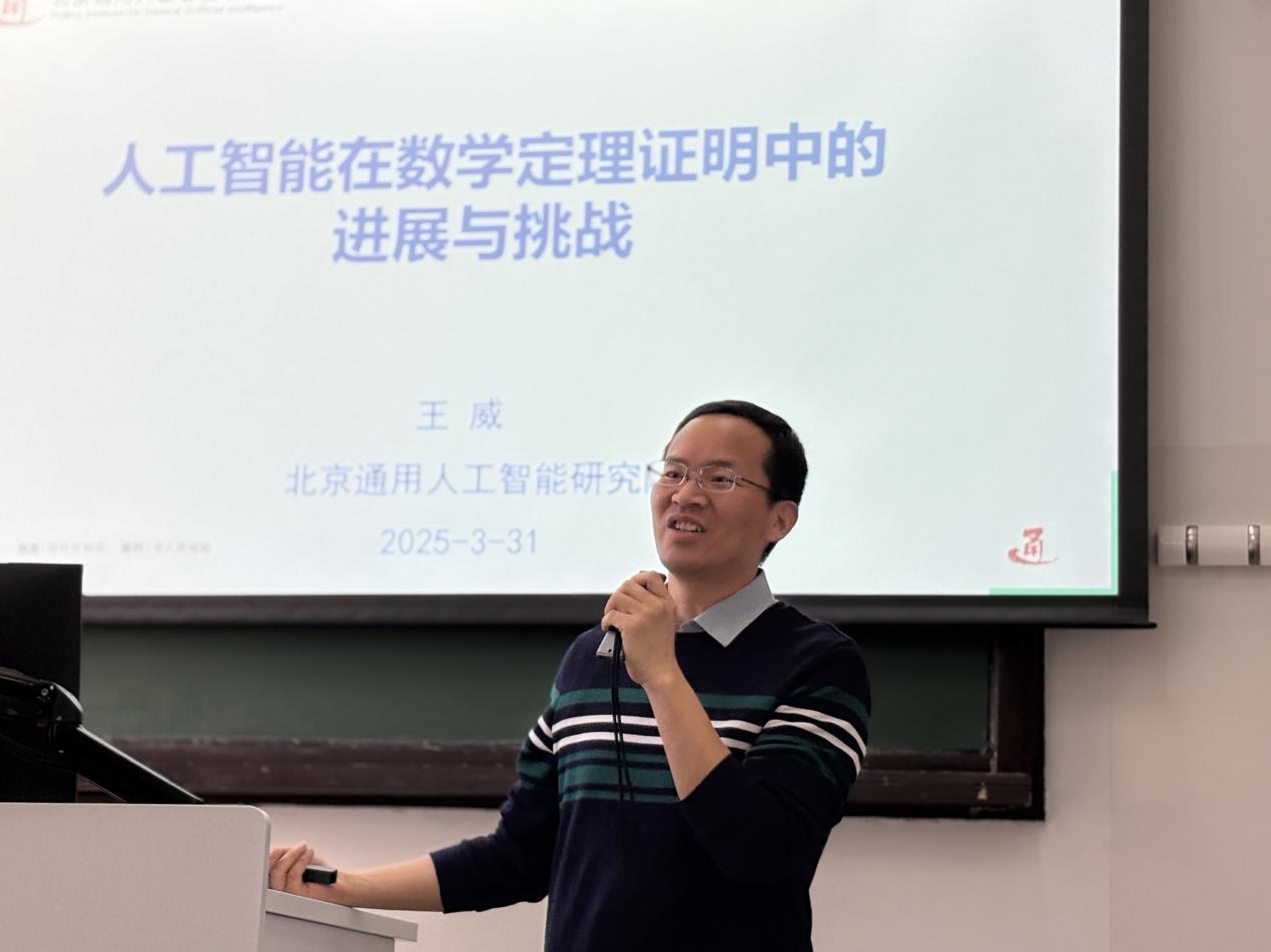 2025年3月31日,sunbet申搏官方网站联合党委学生工作部在电子楼105成功举办京师智能讲堂第二十八期暨网络文化大讲堂活动。本次讲座邀请北京通用人工智能研究院王威研究员,以“人工智能在数学定理证明中的进展与挑战”为主题作报告,全校40余名学生积极参与本次活动。