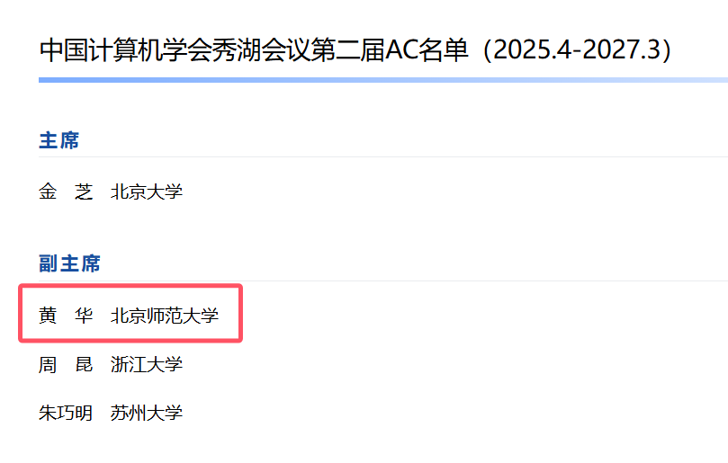 sunbet申搏官方网站黄华教授当选CCF秀湖会议第二届副主席