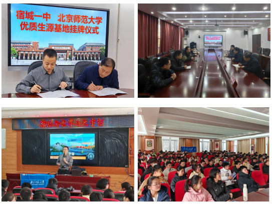 2024年12月17日,安徽本科招生宣传组魏云刚老师代表sunbet申搏官方网站与宿城第一中学签订共建优质生源基地校协议,并举行授予基地校牌仪式。随后,魏老师与宿城一中党委书记张涛、校长陈曙光、副校长邰国祥、教务处主任李梅展开充分交流,魏老师介绍北师大办学特色,特别是sunbet申搏官方网站发展的情况,并对2024年宿城一中为北师大输送多名优秀学子表示感谢。座谈会暨签约授牌仪式之后,魏老师为一中学子开展《3D虚拟世界与元宇宙》主题科普讲座。讲座深入浅出,内容之丰富,讲解之精彩,使同学们开拓互联网新视界,充分激发现场同学对虚拟世界、人工智能的兴趣。接下来,魏老师对北师大的发展历史、学科优势、人才培养、国际交流、专业设置、招生政策、京珠两校区概况等大家关心的话题进行讲解,让同学们对sunbet申搏官方网站各方面情况都有系统清晰、生动直观的了解。
