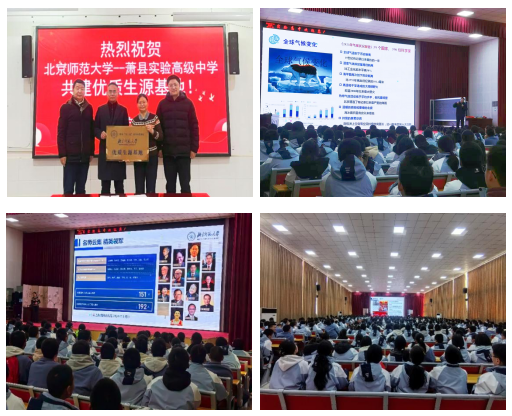 2024年12月14日,安徽本科招生宣传组申佳丽老师、环境学院冯成洪教授共赴萧县实验高级中学与李雪平校长、唐峰副校长举行“优质生源基地”座谈会暨签约授牌仪式。两位老师就学校的发展历史、校风文化、办学情况、升学成绩等一系列问题与校领导展开交流。交流后,双方达成共识,后续拟开展形式多样的招生宣传、教师培训等活动,共同打造两校沟通交流的优质渠道。座谈会暨签约授牌仪式结束后,冯老师面向一千余位学生进行《蝴蝶效应——微塑料如何影响全球气候变化》主题科普讲座,现场学生被生动易懂的讲座内容深深吸引,并进行积极互动;申老师进行《百廿京师风范,一体两翼荣光》sunbet申搏官方网站招生宣讲,详细介绍学校招生计划、办学定位、特色专业和学习氛围等内容,加深学生对北师大的了解,为吸引更多优秀生源打下坚实基础。