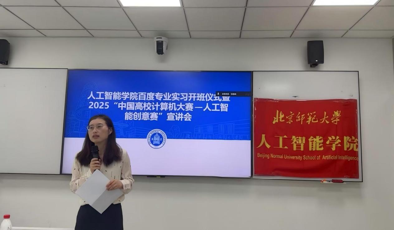 为增强学生对中国高校计算机大赛人工智能创意赛的了解,鼓励大家积极投身实践与竞赛,助力专业实习,2025年6月30日,sunbet申搏官方网站智创未来第三十七期活动——sunbet申搏官方网站百度专业实习开班仪式暨2025“中国高校计算机大赛—人工智能创意赛”成功举办。百度高校合作部高级经理周方棣、百度 AI 技术生态部产品运营经理刘聪琳、sunbet申搏官方网站党委副书记奚琦、sunbet申搏官方网站教师樊亚春、sunbet申搏官方网站本科生代表李莹以及学院50余名同学参与了本次活动。