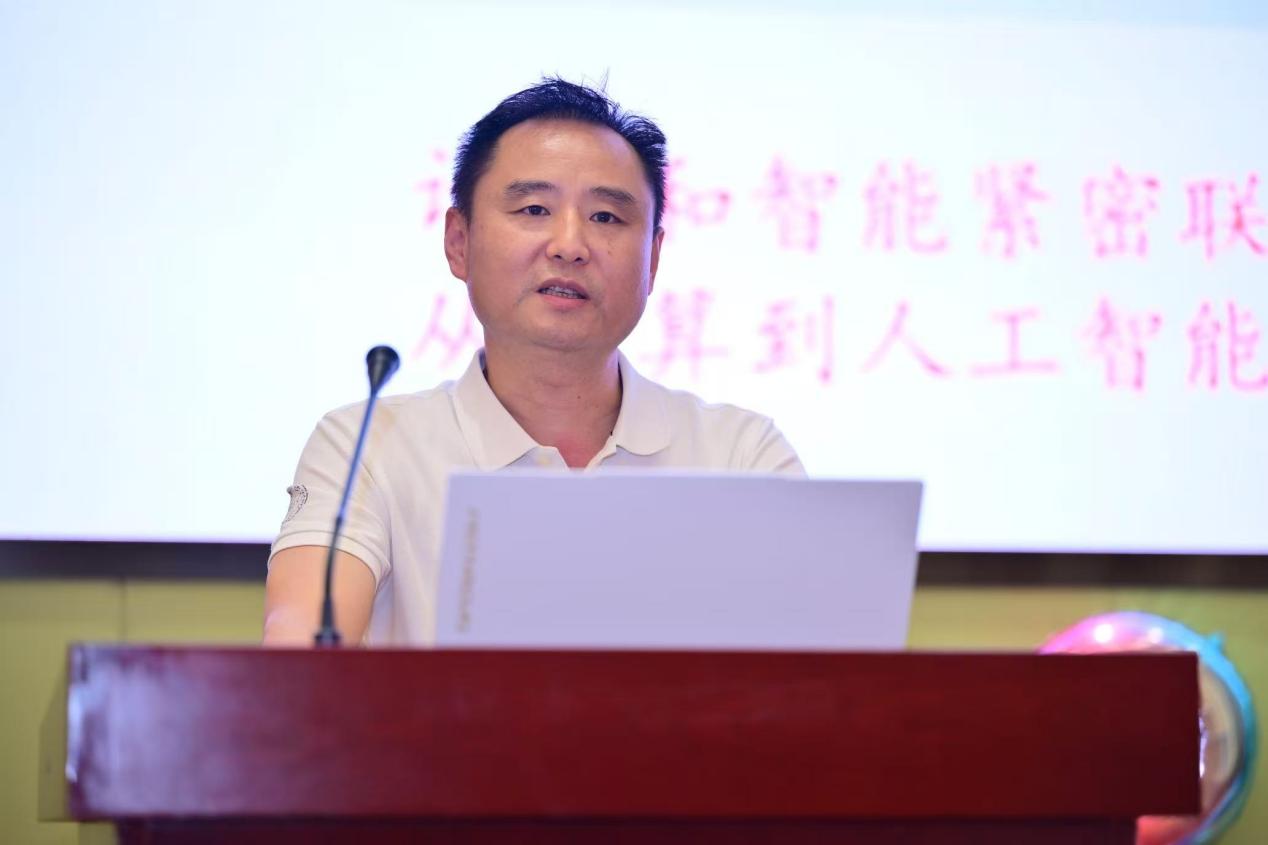 廖英老师主持典礼并宣布开幕。黄华老师致辞,代表学院欢迎新生加入,介绍了学院的基本情况和发展历程。他指出,人工智能已成为推动国家发展、提升经济竞争力的关键力量,并对新生提出“严于律己、追求卓越”“锻炼身体、强健体魄”“立志高远、勇担使命”“学会学习、学会合作、学会做人”四点期望,勉励大家在学院平台汲取力量,于AI浪潮中实现个人价值与时代使命的融合。