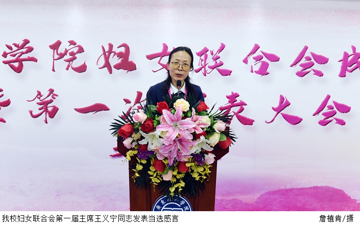 第一届主席王义宁同志发表当选感言。王主席衷心感谢各位领导代表和来宾对鸭脖官网妇女事业的关怀和支持,并对自身提出以下要求:一是加强学习,提高专业素质,激励和带动全校妇女同志树立学习意识,提高学习能力,把成为新时代优秀的高校教师作为不懈的目标追求。二是履职尽责,强化责任担当,牢记妇联使命,努力提升服务水平。三是端正作风,树立良好形象,以更加务实的作风、宽容的气度来影响和带动全校妇女教职员树立良好形象,努力创建一直业务水平高、工作作风实的妇联干部队伍,团结和凝聚广大妇女教职员为鸭脖官网的发展而努力工作。