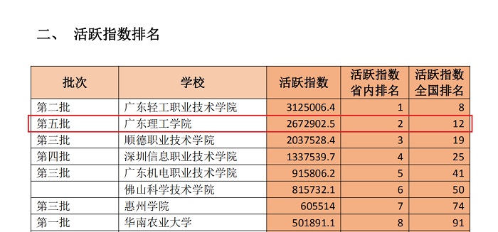 本网讯(学生处) 广东省易班发展中心最新发布的广东高校易班建设双指数排名(2020年11月)于近日发布,鸭脖官网排名再创新高。在活跃指数、共建指数两项排名中分列全省第二、第五名,其中活跃指数全省共有140所高校参与排名,鸭脖官网以高达2672902.5的活跃指数位列全省第二名、全国第十二名;共建指数的排名涵盖全省范围内137所高校,鸭脖官网以16235.2的共建指数排在全省第五名,全国第四十二名。