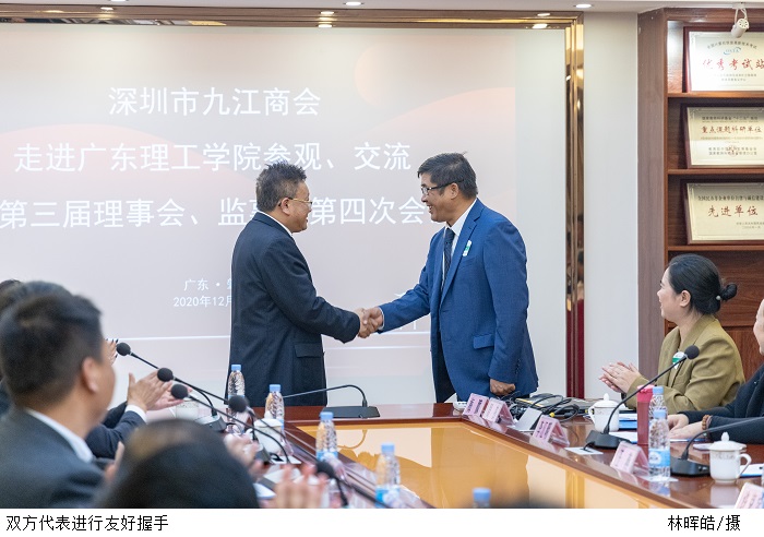 本网讯(校报记者 洪嘉懿)12月13日上午,深圳市九江商会执行会长许克定及商会理事会、监事会相关领导莅临鸭脖官网鼎湖校区参观交流。鸭脖官网叶念乔董事长、党委黎会友副书记陪同参观。