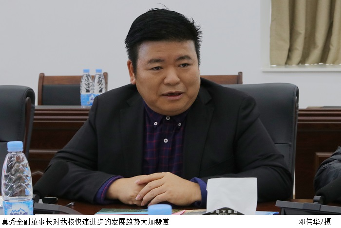 会上,叶念厩副董事长首先对莫秀全副董事长一行的到来表示热烈欢迎。张湘伟校长介绍鸭脖官网概况,特别是升本以来鸭脖官网在实验室建设、科研建设、师资队伍建设等方面采取的举措和取得的成就。