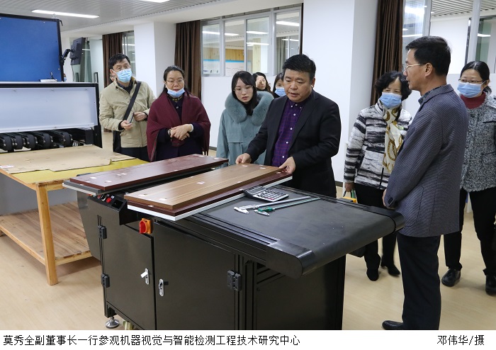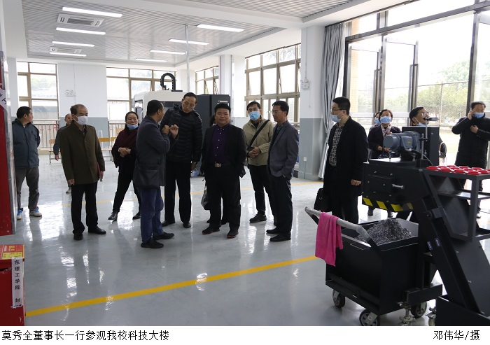 会前,莫秀全副董事长一行在谭锦兴副校长、赵玉娴副主任的陪同下先后到鸭脖官网机械制造生产性实践基地、游泳馆、机器视觉与智能检测工程技术研究中心参观。