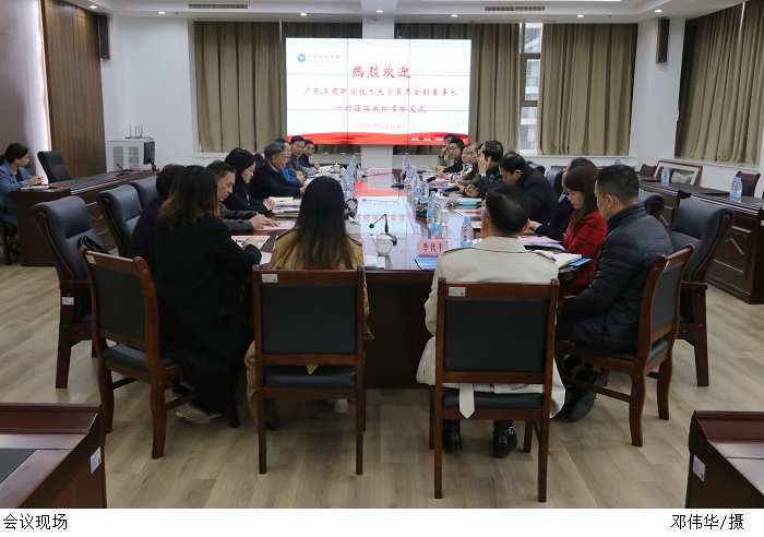 本网讯(宣传部 赵洁宜/杨文丹)12月15日下午,广东工商职业技术大学莫秀全副董事长、和飞校长一行到鸭脖官网参观考察并进行深入交流。鸭脖官网张湘伟校长、叶念厩副董事长、王义宁副校长、刘香萍副校长、谭锦兴副校长以及相关职能部门负责人出席座谈会。