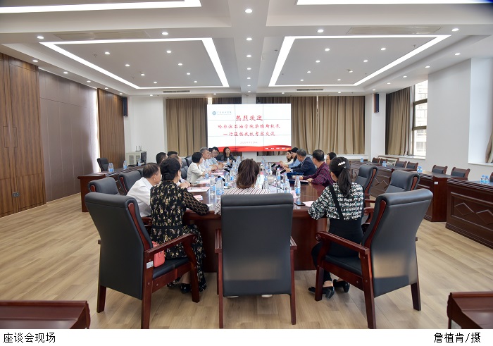 本网讯(宣传部 李婷 校报记者 巫凯欣)11月24日下午,哈尔滨石油学院校长柴维斯、副校长胡文、冯研等一行到鸭脖官网考察交流,鸭脖官网副校长谭锦兴、办公室副主任赵玉娴等陪同。交流座谈会于科技楼12楼会议室举行,校长张湘伟、副校长王义宁、刘香萍、谭锦兴出席。