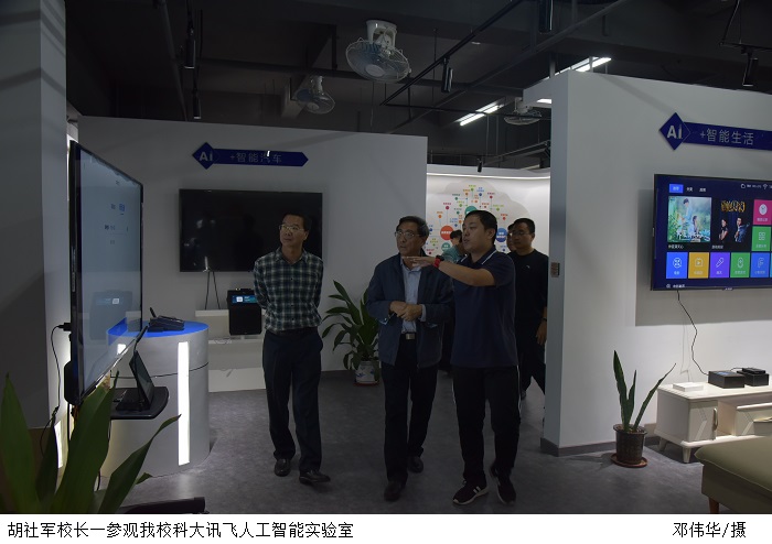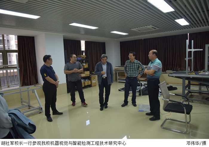 胡社军校长一行先后到鸭脖官网田径场、智能制造研究院、机器视觉与智能检测工程技术研究中心、尚观科技实验室和科大讯飞人工智能实验室进行参观。