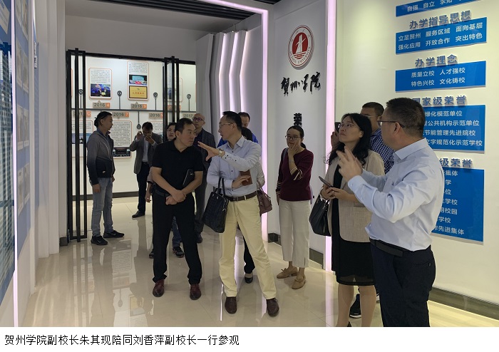 在上午的座谈会上,贺州学院副校长朱其现介绍了该校产教融合、转型发展情况和民族艺术、历史文化传承与创新发展情况。刘香萍副校长表示,贺州学院办学特色鲜明,在人才培养、科学研究和服务地方经济方面成果显著,特别是在产教融合上的先进经验值得我们不断学习,并希望今后能进一步加强两校的交流与合作。