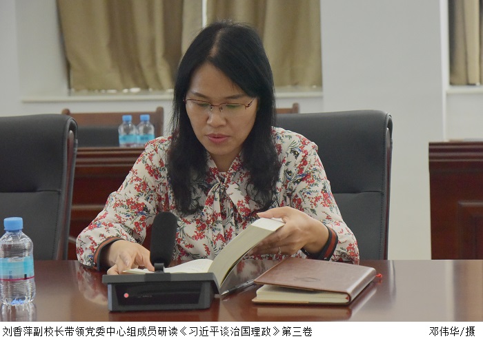 刘香萍副校长首先带领党委中心组成员认真研读《习近平谈治国理政》第三卷中《走得再远都不能忘记来时的路》,这是习近平总书记在瞻仰上海中共一大会址和浙江嘉兴南湖红船时的讲话内容。张东生书记强调,党员同志要弘扬红船精神,不忘初心,善作善成,一往无前。同时,张书记要求党委中心组、二级学院党总支、基层党支部要继续多形式学习领悟《习近平谈治国理政》第三卷,加强内部督查。