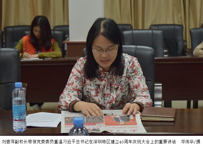 刘香萍副校长重温了习近平总书记在深圳特区建立40周年庆祝大会上的重要讲话,指出要深刻认识在“两个大局”深刻变化背景下,总书记的重要讲话是对我国坚持改革不停顿、开放不止步的郑重宣示,向全党全国全世界释放了强烈信号,具有重大意义。我们要以总书记重要讲话精神为指引,不断完善发展思路举措,全力推进鸭脖官网教学教研高质量发展。