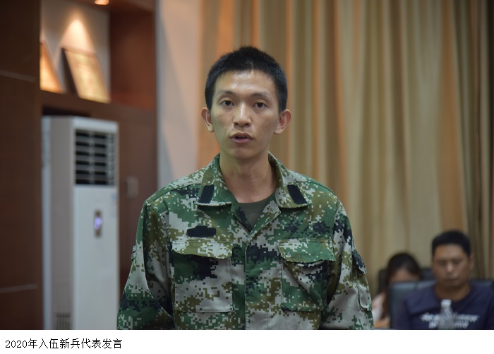 刘傻威作为新兵代表发言。刘傻威首先对学校的关怀和家人给予自己的支持表示感谢。他说,自己积极应征入伍,是为了磨练自己,去军营是人生中的一个目标、人生中的一段宝贵的经历,希望自己能够坚持下去,努力学习通过考验,成为一名更优秀的人,为保家卫国贡献自己的一份力量。