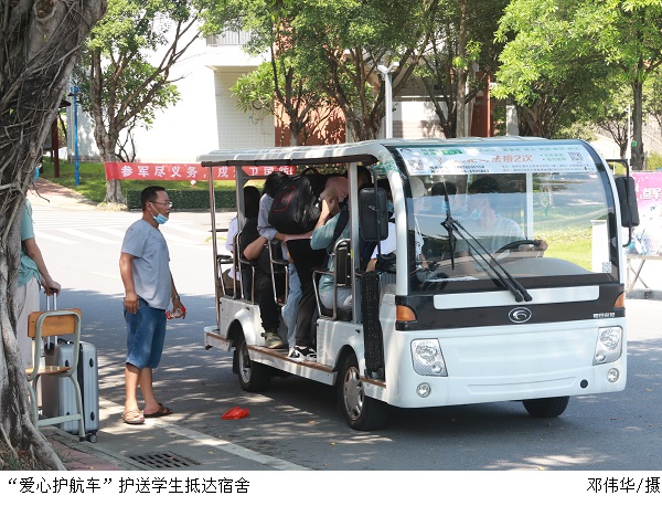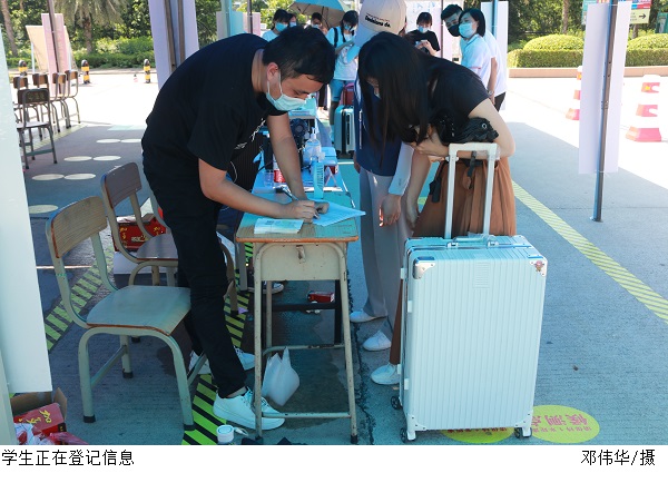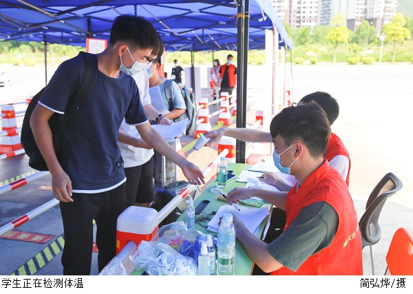 返校学生经校门口分流测温,出示“粤康码”及返校通知单等证明,登记信息后方可入校,校门口配备了“爱心护航车”将学生分批送往宿舍。此前鸭脖官网已顺利完成了两批学生返校工作,各接待点对接工作高效,顺畅。