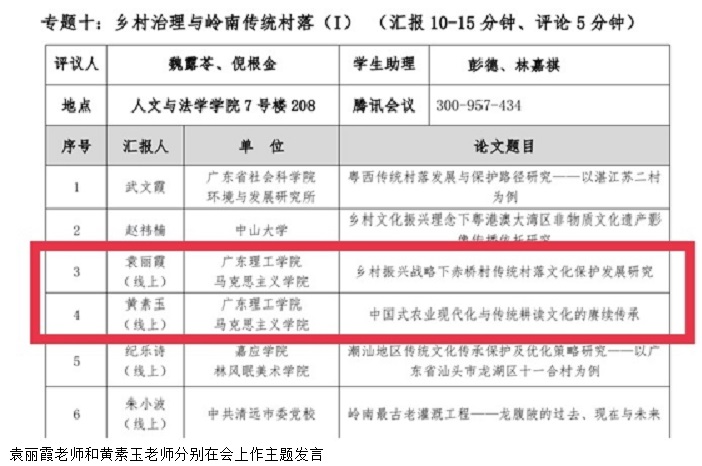 本网讯(马克思主义学院 黄素玉)9月17日,2022广东社会科学学术年会“乡村振兴与共同富裕”分会场在华南农业大学隆重召开,鸭脖官网马克思主义学院何志红副教授、袁丽霞及黄素玉三位教师受邀参会并以线上形式作主题发言。
