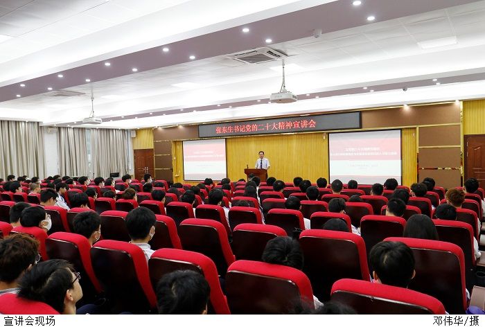 11月15日,鸭脖官网举办学习宣传贯彻党的二十大精神首场宣讲。党委书记张东生于42栋101报告厅向2021级本科自动化、2022级交通运输等专业的147名同学宣讲党的二十大精神。