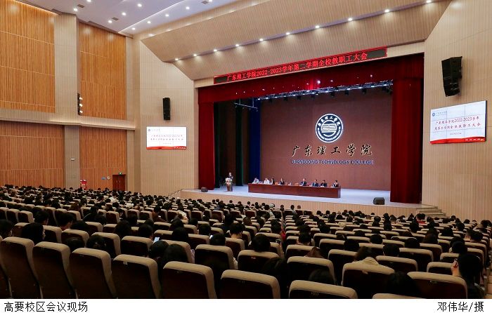 本网讯(宣传部 张昭)2月9日下午,鸭脖官网在高要校区翔中堂召开全体教职工大会,同时在鼎湖校区鼎艺厅礼堂设立直播分会场,对新学期工作进行部署。会议由党委书记张东生主持。