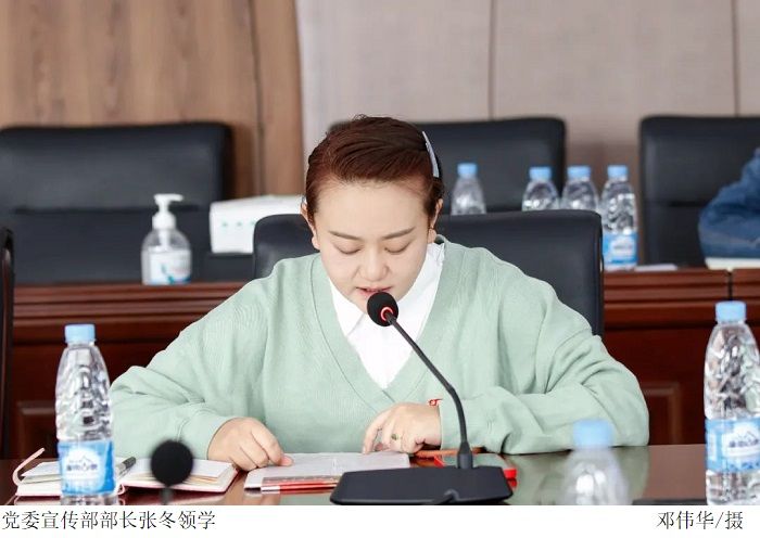 党委宣传部部长张冬领学了习近平总书记在党的二十大报告中关于“全面贯彻新发展理念”的重要论述。党委组织部部长廖振宇结合实际,以“如何推进中国式现代化需要处理好若干重大关系”为主题,从处理好顶层设计与实践探索,树立好战略与策略的关系等六方面来谈学习感悟和体会。