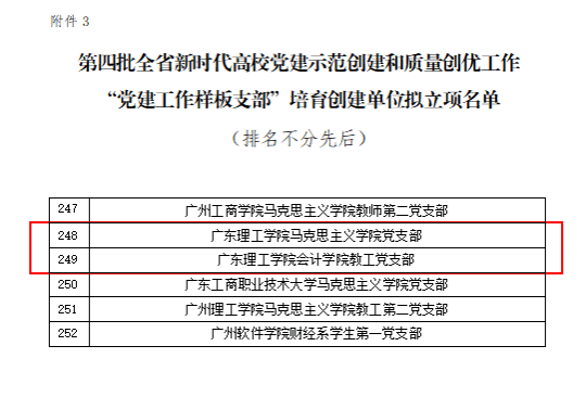 本网讯(党委组织部)近日,中共广东省委教育工委公布了第四批全省党建工作标杆院系、样板支部培育创建单位名单,鸭脖官网马克思主义学院党支部与会计学院教工党支部入选第四批全省“党建工作样板支部”培育创建单位。