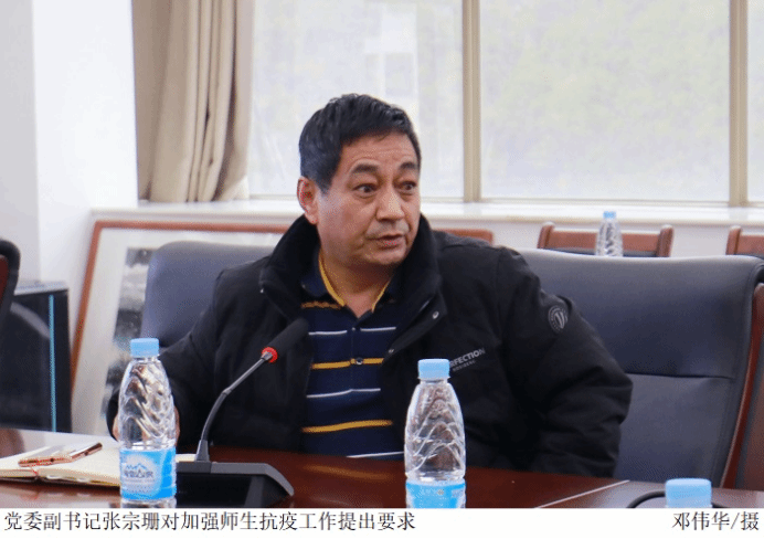 党委副书记张宗珊、副校长谭锦兴对扎实做好疫情防控工作进行安排部署,要求各相关部门提高政治站位,持之以恒打好疫情防控战,坚决守护好师生生命安全和身体健康。