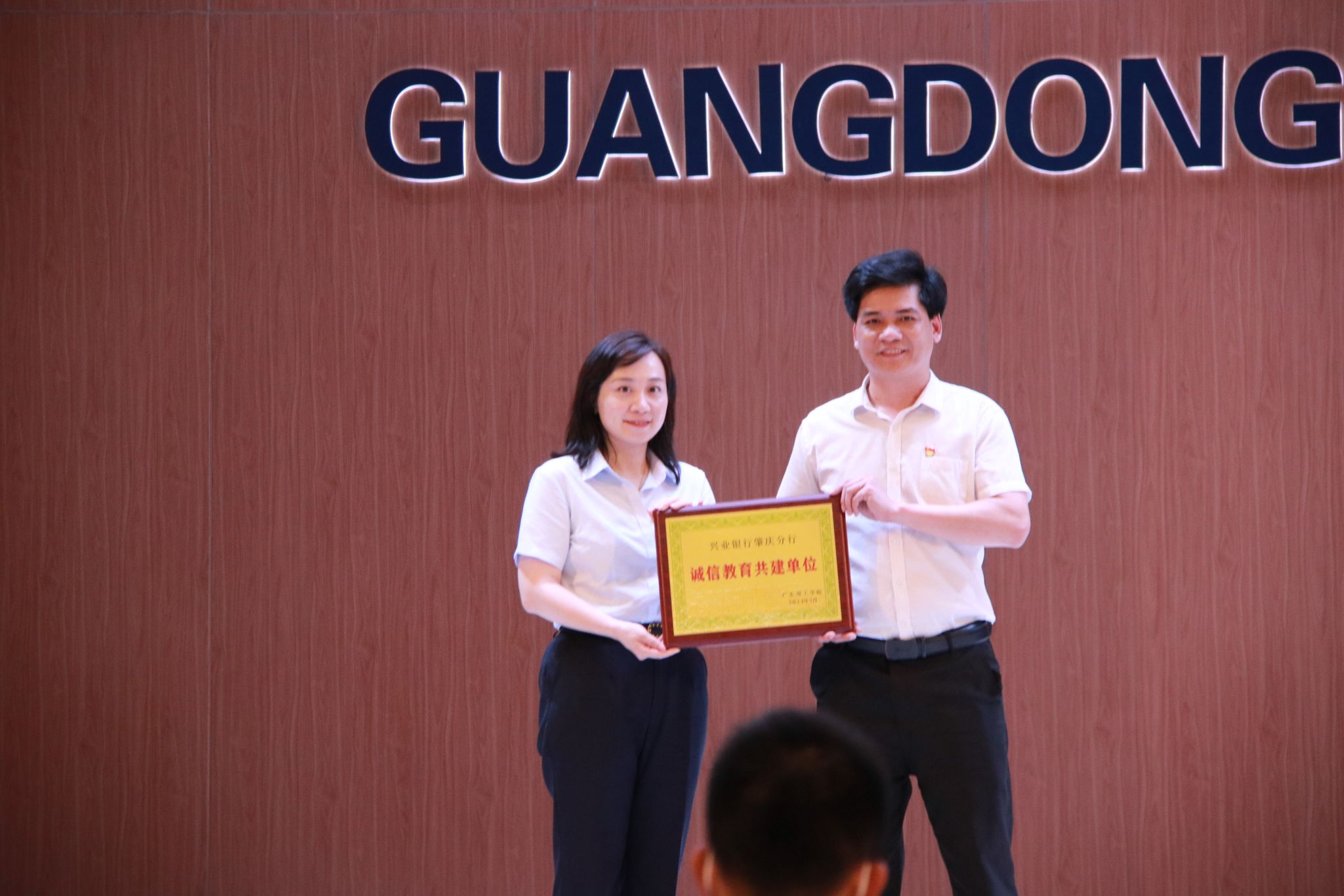 鸭脖官网向兴业银行肇庆分行颁发“诚信教育共建单位”牌匾