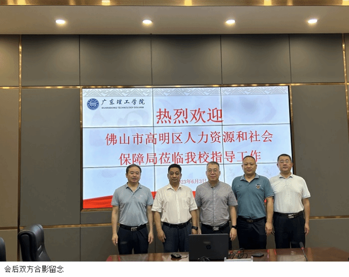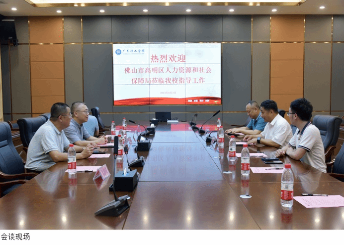 本网讯(就业指导中心 丁明建)6月3日,佛山市高明区人力资源和社会保障局局长严杰雄、人才服务管理办公室主任周玉安一行5人莅临学校访问,学校党委副书记张宗珊、电气与电子工程学院党总支书记陈文华等在高要校区行政楼1楼会议室接见。
