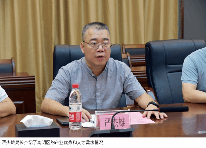 严杰雄局长介绍了高明区的产业特色和人才需求情况,他指出,高明区制造业发达,对工科人才特别是现代高新技术制造业专业人才需求量大,yabo鸭脖官网在这方面人才培养优势明显,他希望与学校就人才培养、招聘等方面开展深度合作,聚集双方优势,吸引更多毕业生到高明区实习、就业。