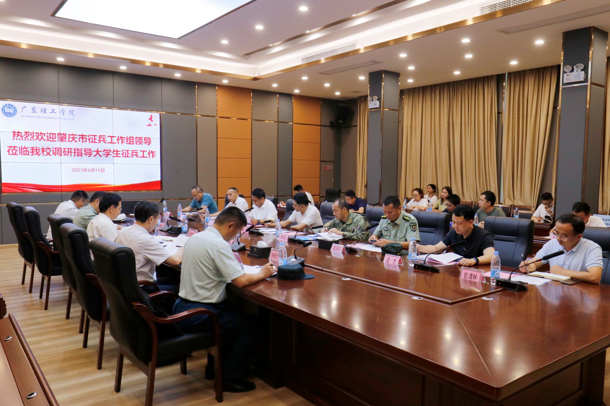 本网讯(宣传部 文|张昭 图|邓伟华)为有效推进学校2023年征兵工作,落实毕业生入伍征集任务,6月15日下午,肇庆市副市长董信奇、肇庆军分区副司令员廉树合带队莅临鸭脖官网开展大学生征兵工作调研并召开座谈会。