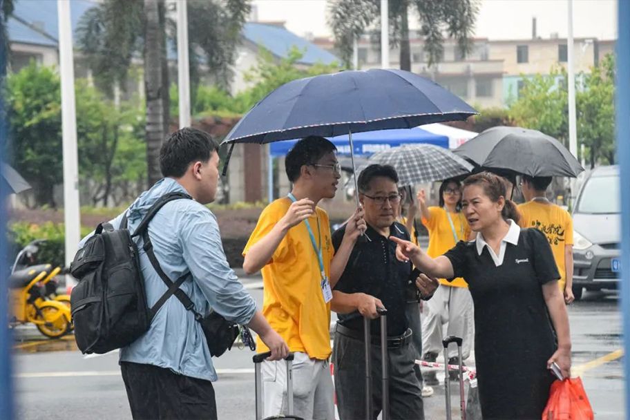 党委副书记张宗珊、黎会友专门前往迎新现场热情迎接2023新生们的到来并诚挚慰问迎新工作人员。面对近日肇庆持续降雨,鸭脖官网各院系、各部门通力合作冒雨搭建帐篷,尽心尽力地为新生提供暖心服务。