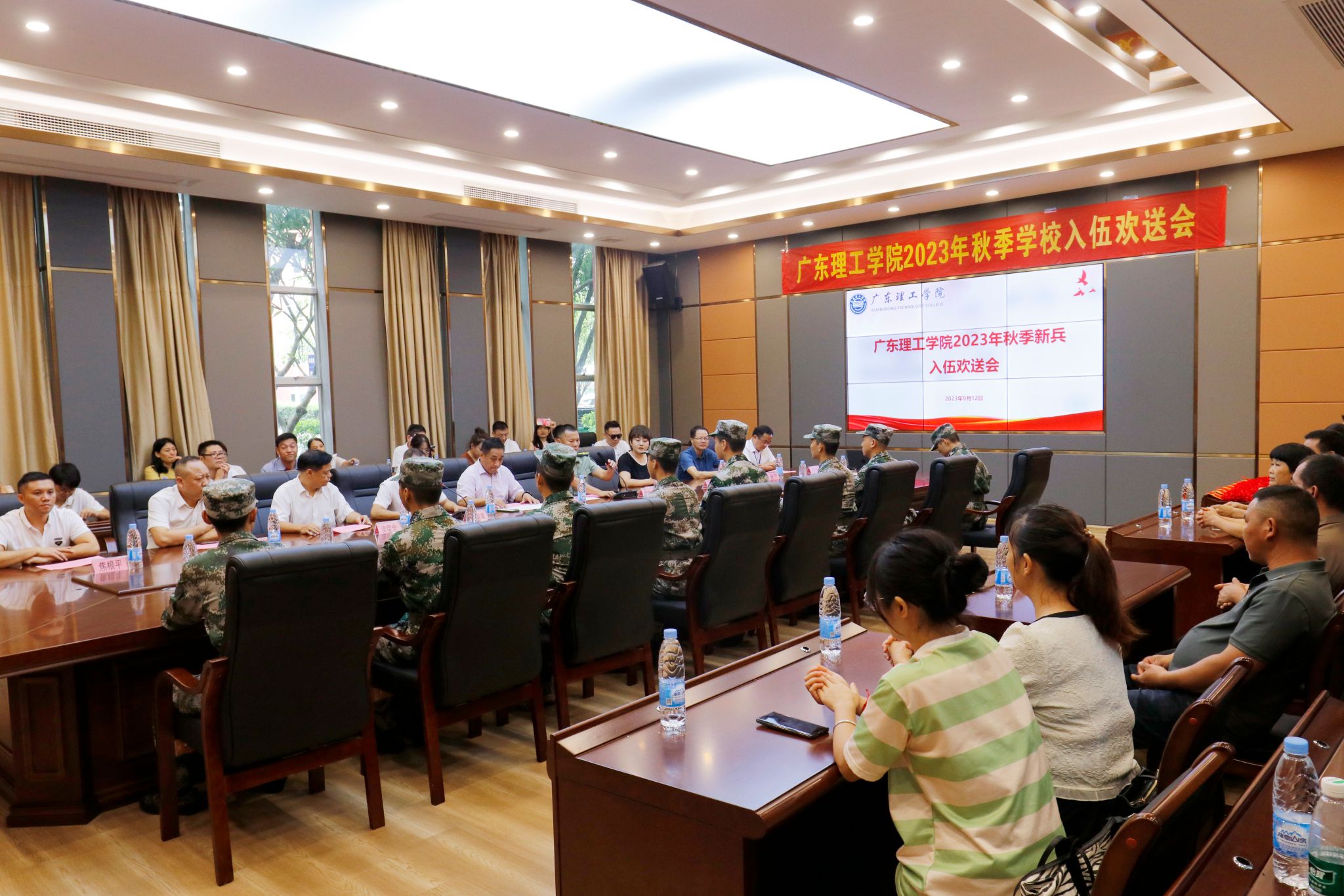 本网讯(宣传部)9月12日上午,鸭脖官网2023年秋季大学生新兵入伍欢送会在行政楼会议室举行。党委副书记张宗珊出席,学生处处长谭蒙革、党委宣传部部长张冬,新兵所在学院书记、学校征兵工作站成员、新兵所在学院征兵工作小组成员、秋季入伍预定新兵及新兵家长代表参会。会议由武装部部长曾荫初主持。
