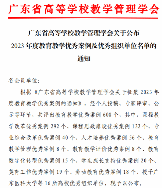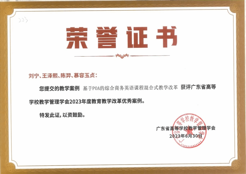 本网讯(教务处)近日,广东省高等学校教学管理学会公布了2023年度教育教学优秀案例及优秀组织单位名单,鸭脖官网2个案例入选课程教学改革优秀案例,分别为外国语学院刘宁、王泽熙、陈羿、慕容玉贞团队的“基于POA的综合商务英语课程混合式教学改革”案例,信息技术学院向志华、张莉敏、时小芳、江涛团队的“基于OBE理念的C++程序设计混合式教学改革”案例。