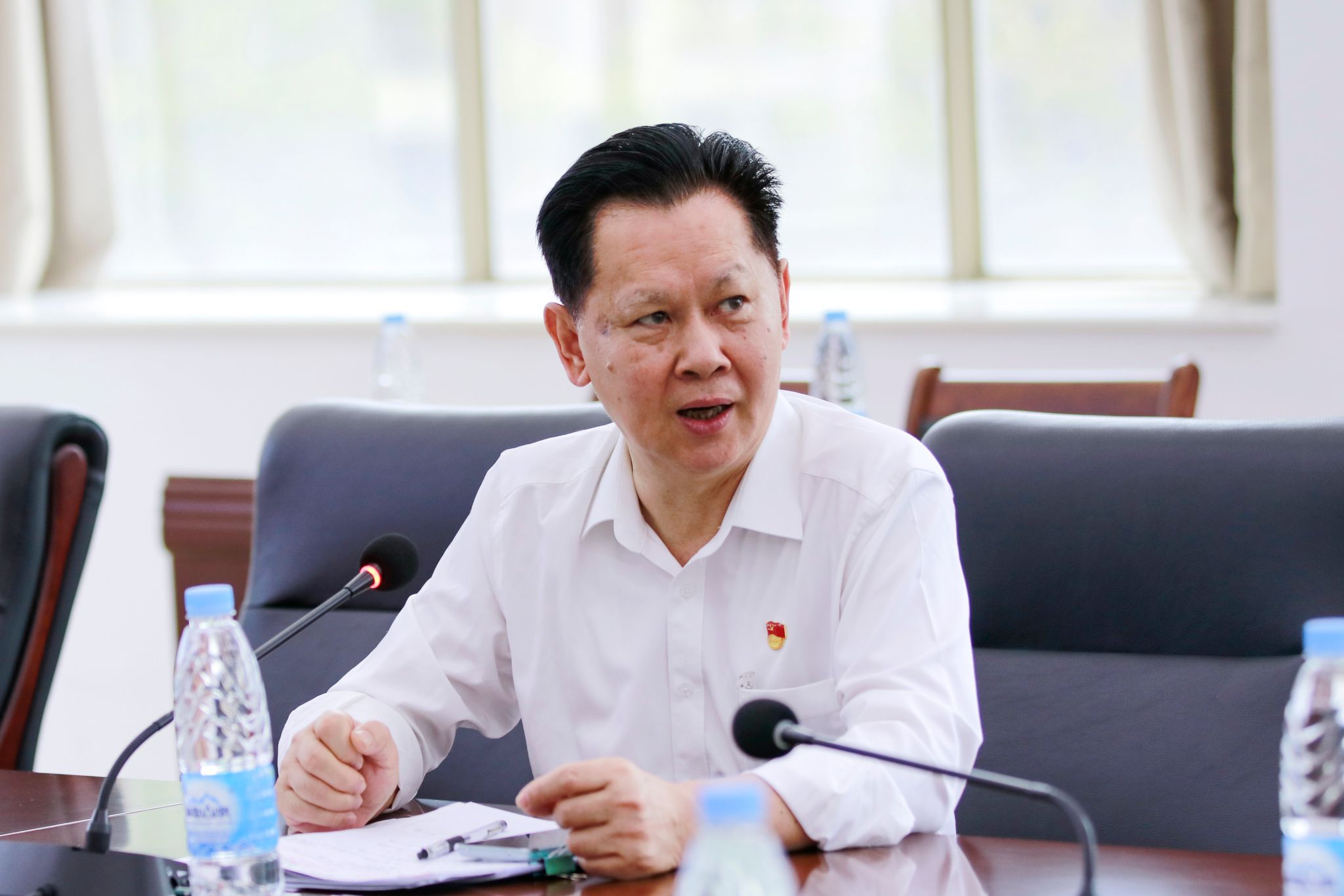 本网讯(宣传部)2023年10月10日,学校党委于综合楼12楼会议室举办第二批主题教育读书班,校长张湘伟作专题报告。党委书记张东生主持报告会。党委正副书记、正副校长,校长助理、党委部门正职负责人、行政部门党员正职负责人、各党总支书记(含中专党总支)、直属党支部书记等参加本次报告会。