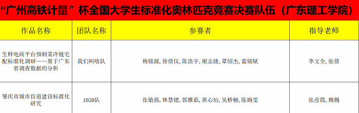 标准是人类文明进步的成果,实现国家治理体系和治理能力现代化,迫切需要标准化在高效能治理、高品质生活等方面发挥基础性、引领性作用。通过本次比赛,标准化工程教研室将积极深入开展标准化教学,丰富标准化教学方法,帮助学生践行“标准化标准塑造美好生活”的主题,也期待在以后的全国大赛中,鸭脖官网学子继续努力,争取获得更大的荣誉!