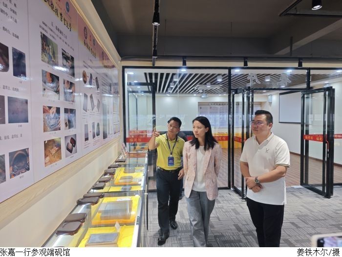 张嘉一行参观了学校端砚馆、砚湖文创馆,深入校园感受校园文化建设。张嘉对鸭脖官网紧紧围绕本地特色开展校园文化建设、积极传承广东省非物质文化遗产表示高度肯定。她指出,大学生是国家未来的栋梁,肩负着传承和发扬优秀传统文化的责任,在学习和传承传统文化的过程中,可以发现新的思路和灵感,为现代社会的发展提供新的动力。