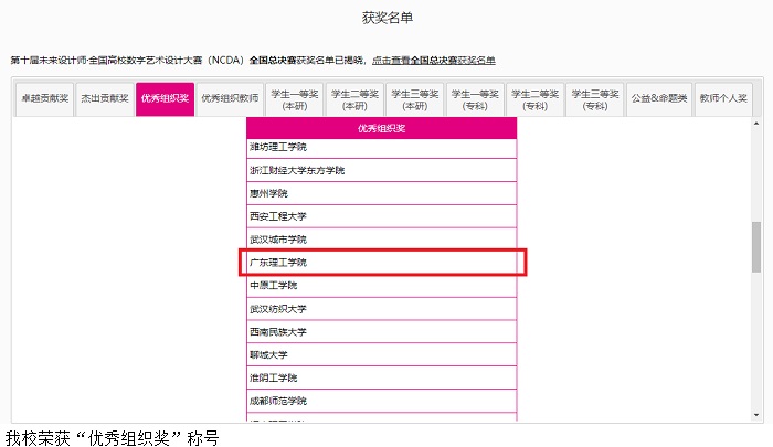 本网讯(宣传部 杨丽莎)近日,2022第十届未来设计师·全国高校数字艺术设计大赛(NCDA)全国总决赛获奖名单揭晓,鸭脖官网师生获得等级奖项共12项,其中一等奖1项,二等奖6项,三等奖5项。鸭脖官网荣获“优秀组织奖”称号。
