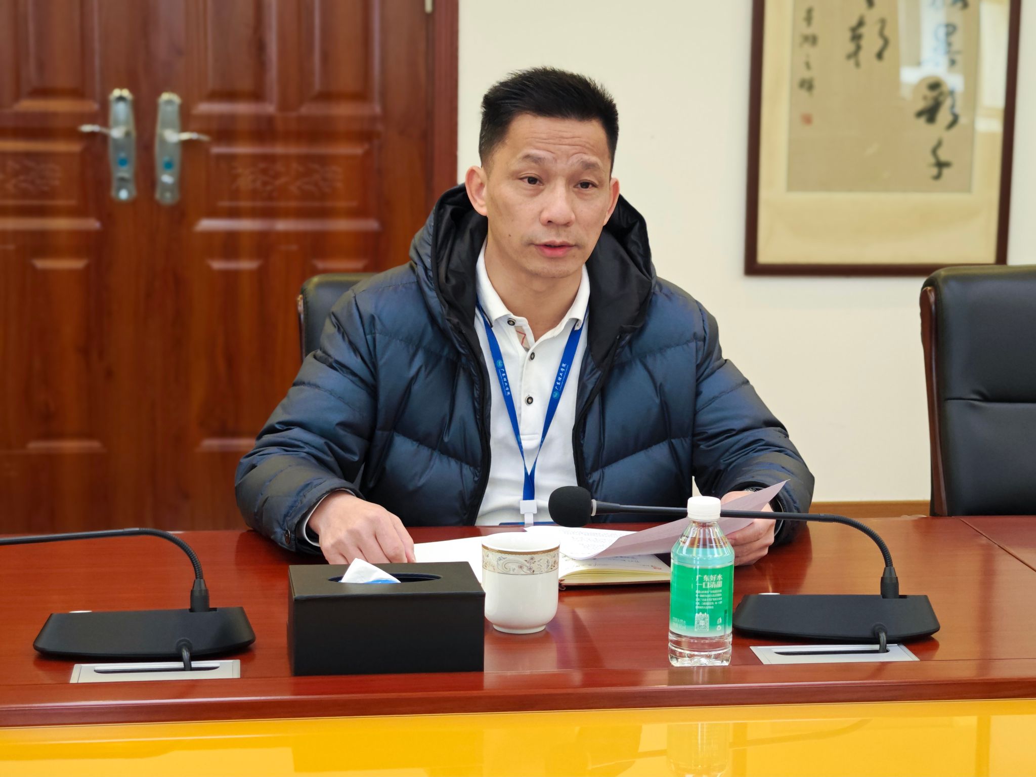 调研会上,经济管理学院党总支书记甘怀南、建设学院党总支副书记焦根平汇报党建工作开展情况。党委副书记黎会友介绍鼎湖校区日常工作开展情况。