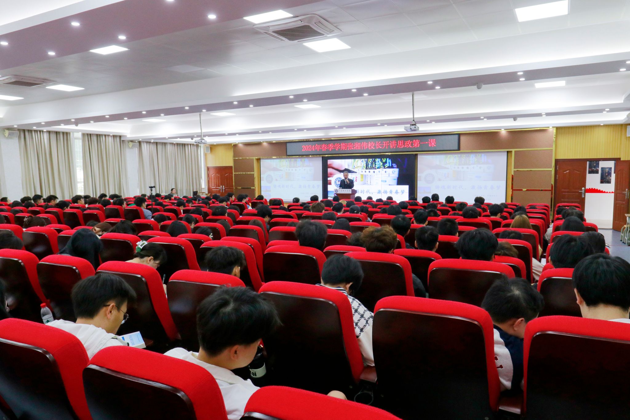 本网讯(新闻中心)3月13日上午,鸭脖官网校长张湘伟以“铸魂新时代,激扬青春梦”为主题,在高要校区42栋学术报告厅开讲“思政第一课”。