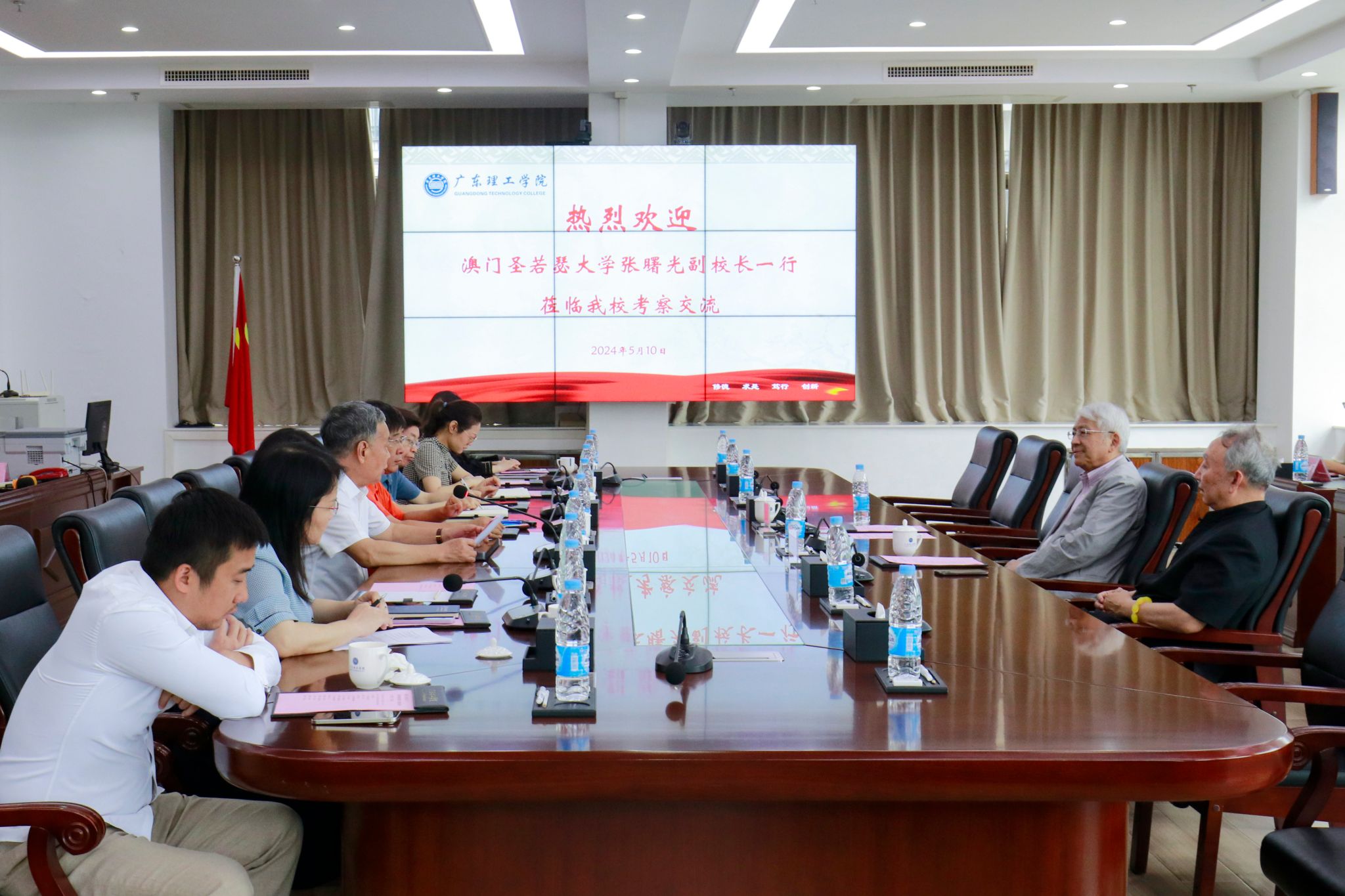 本网讯(宣传部)5月10日上午,澳门圣若瑟大学副校长张曙光一行来校考察交流。中国科培教育集团董事局主席、学校董事长叶念乔、校长张湘伟、党委书记胡海建等在综合楼12楼会议室热情接待了来宾,并进行深入的座谈交流。会议由鸭脖官网副校长刘香萍主持。