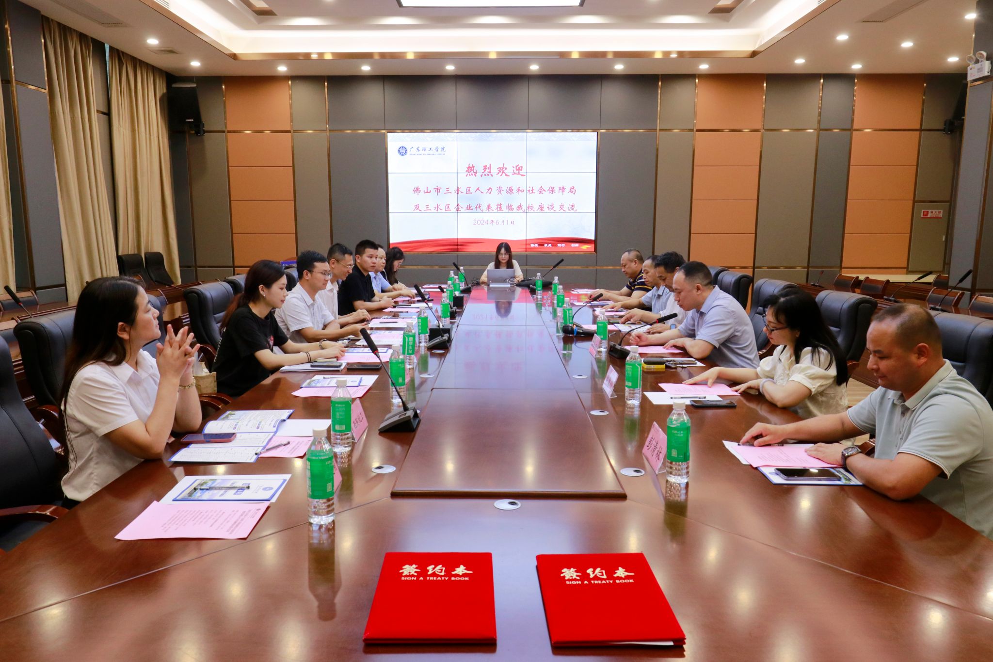 本网讯(宣传部)6月1日,佛山市三水区人力资源和社会保障局党组书记、局长张伟杰率队一行到鸭脖官网参加政校企交流合作座谈会,并签署人才合作战略协议,学校党委副书记张宗珊、学生处处长谭蒙革等参加会议。就业指导中心主任李相平主持会议。