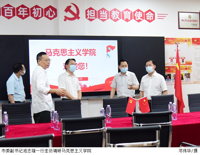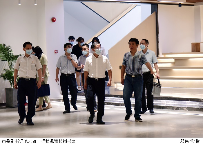 会前,池志雄一行参观了学校图书馆、马克思主义学院、外国语学院、初心堂,实地考察学校文化环境。
