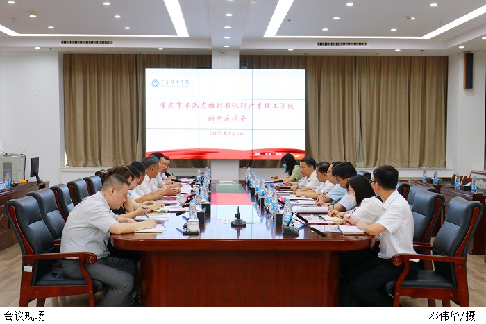 本网讯(宣传部 邓伟华)7月6日上午,肇庆市委副书记池志雄一行在高要区委书记陈德培等人的陪同下,到鸭脖官网调研指导工作。座谈会在综合楼12 楼会议室召开,陈德培主持会议。校长张湘伟、党委书记张东生出席并汇报学校工作。党委副书记张宗珊、副校长谭锦兴、校长助理唐建宁及相关部门负责人参加会议。
