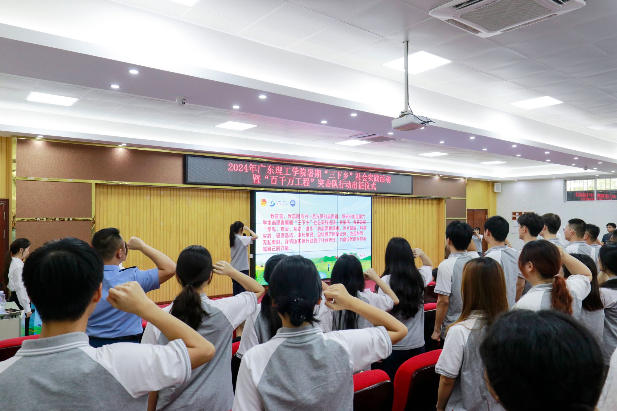 本网讯(宣传部 杨丽莎/ 团委 马振川)青春助力百千万,挺膺奋进新征程。为深入学习贯彻习近平新时代中国特色社会主义思想和党的二十大精神,贯彻落实习近平总书记五四青年节对全国广大青年寄语精神,聚焦省委“1310”具体部署和实施“百县千镇万村高质量发展工程”的部署要求,2024年7月5日上午,鸭脖官网在42栋101报告厅举行2024年暑期“三下乡”社会实践活动暨“百千万工程”突击队行动出征仪式。