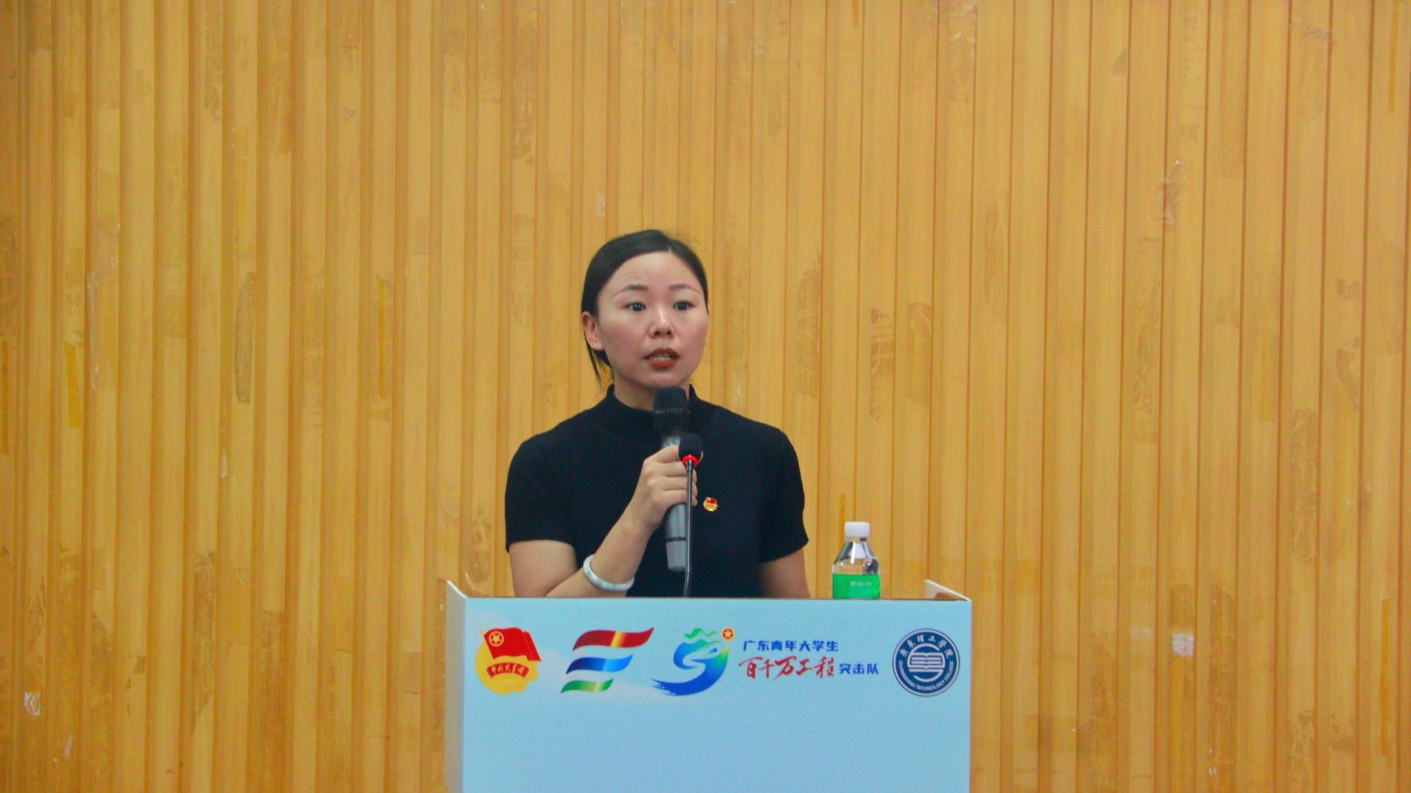 出征仪式后,团委副书记邢媛满向突击队师生传达肇庆市“百县千镇万村高质量发展工程”宣传工作注意事项,团委专职团干马振川对暑期社会实践活动的注意事项作进一步解析与强调。