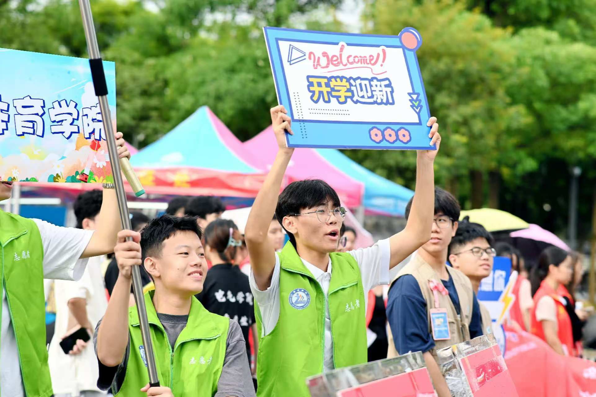 此外,学校布置了全校各个节点的迎新氛围,设置了清晰的入学流程及场地图、指引牌等,每一个细节都透露出学校对新同学的重视与用心。学校还组织教职工和志愿者前往汽车站、火车站、高铁站迎接新生,他们身穿马甲,早早到位,为新生提供暖心帮助。