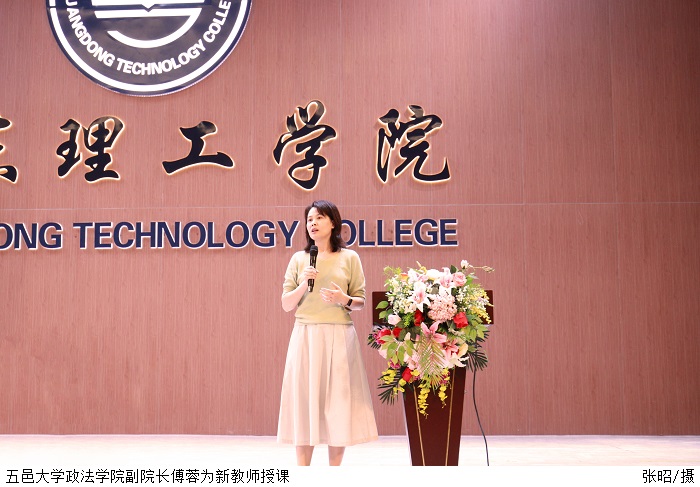 五邑大学继续教育学院谢祥云院长的致辞中强调了“两学”培训的重要性,勉励新教师要努力学习,切实提高自身高等教育理论水平,成为一名合格的大学教师。
